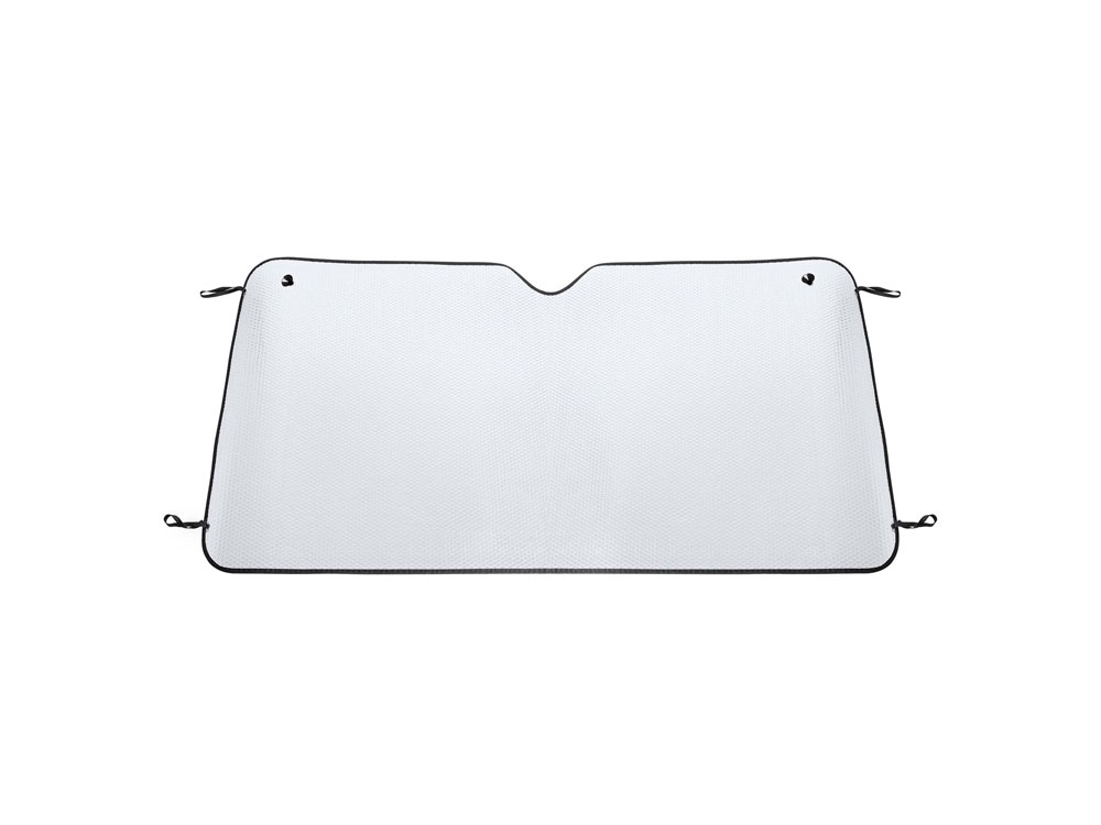 Автомобильный солнцезащитный экран большого размера идеально подходит для грузовиков и фургонов. Включает в себя металлические кольца с присосками и эластичные ремни для складывания.