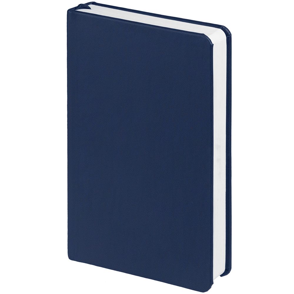 Блокнот с твердой обложкой, выполнен из материала Latte, темно-синего цвета XX, дополнен ляссе в цвет обложки.