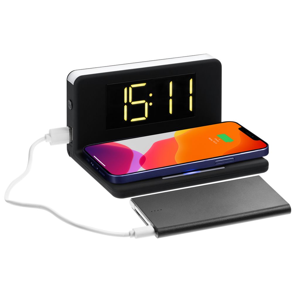 —Часы настольные с беспроводным зарядным устройством Pitstop, черные